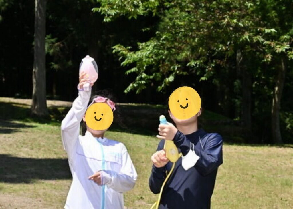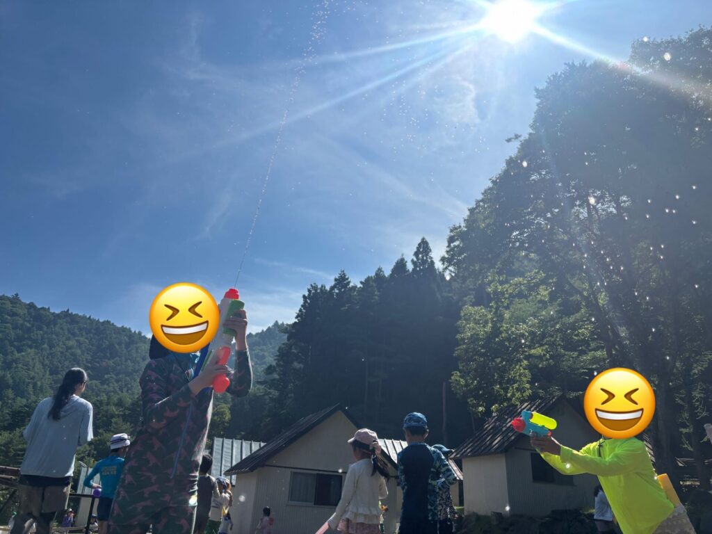 水鉄砲大会では、それぞれ自慢の水鉄砲を手に白熱のバトル!