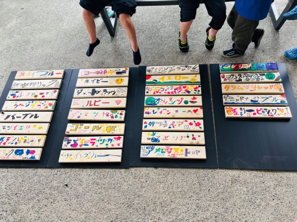 完成した表札を飾ると、キャンプ場全体がとても華やかになりました♪