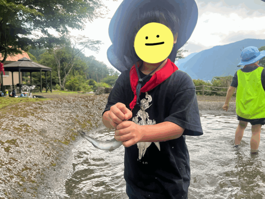 続いては、みんなが楽しみにしていた マスのつかみ取り に挑戦!